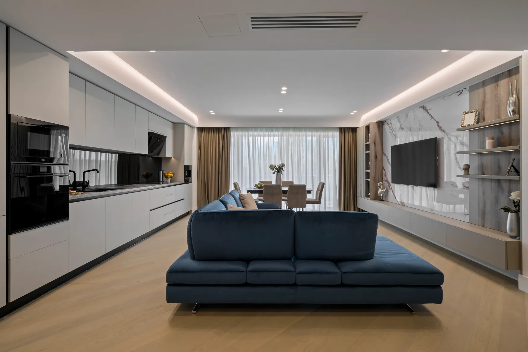 Apartament 3 camere Cortina 126 Residence Zona Pipera Living open space. bucatarie. hol