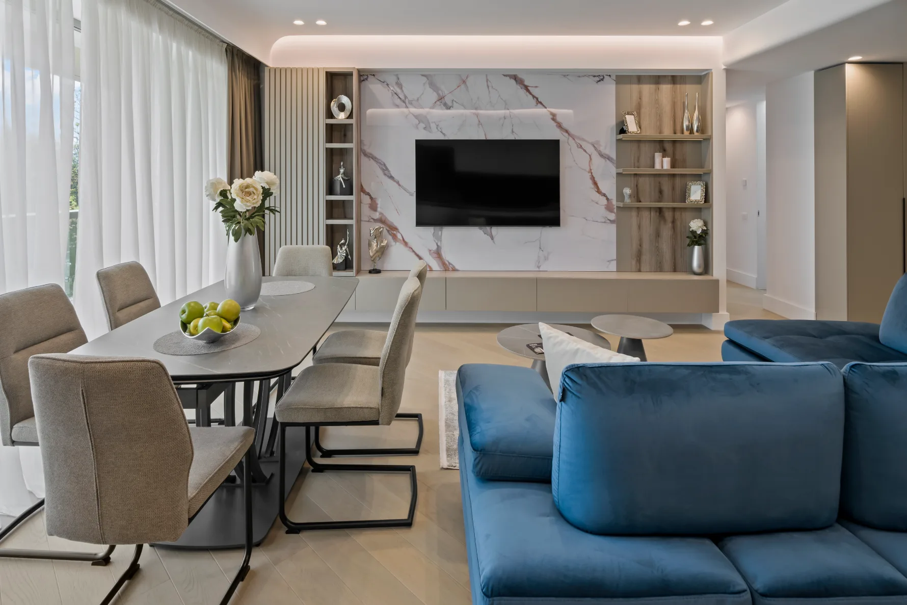 Apartament 3 camere Complex Cortina 126 . Living open space cu bucatarie si hol integrate